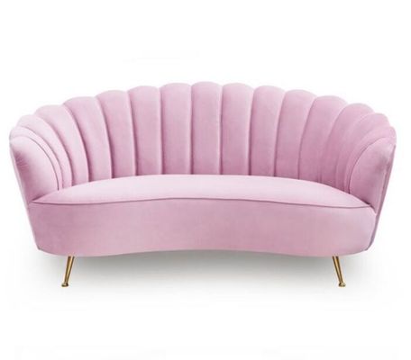 Pink couch velvet tufting upholstered wedding rental metal living room sofa with 4 metel legs